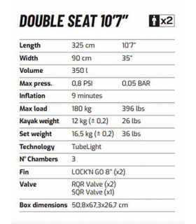 Kayak inflable estable y ligero, pensado para paseos y travesías costeras o en aguas tranquilas. Se infla en minutos, cabe en una mochila de transporte y ofrece gran estabilidad para iniciarse o disfrutar en familia.