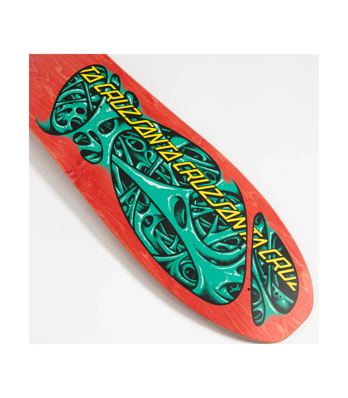 El Santa Cruz Oops Mucus Reissue 10.32" recupera el shape “pig” ancho y la asquerosamente icónica gráfica “Oops Mucus” (arte Jim Phillips) en acabado spot-gloss fluorescente. Fabricado en 7 láminas de arce norteamericano prensadas con resina epoxi, entrega pop sólido y rigidez old-school. Sus generosas dimensiones (ancho 10.32", largo 30.7", wheelbase 15") aportan la estabilidad perfecta para pool, bowl y cruising retro, mientras la concavidad Cruz Missile II bloquea tu pie en el coping. Cuélgalo como pieza de colección… o móntalo con ejes 169-175 mm y deja que el moco salpique cada carve.